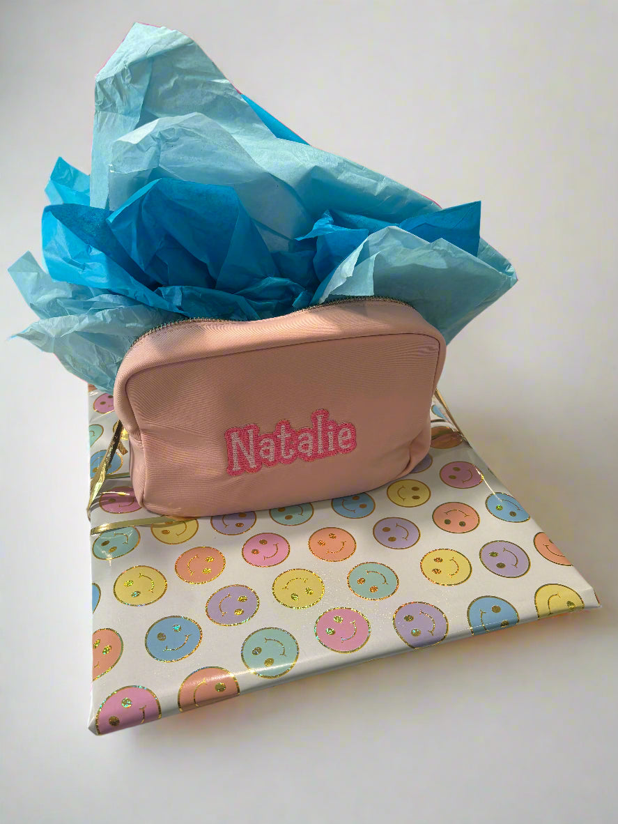 We offer personalization on: baseball caps, trucker hats, Bella+Canvas t-shirts, Gerber onesies, baby hats and bonnets, blankets (plush, quilted, receiving flannel, etc.), baby layettes (outfit sets), and more.