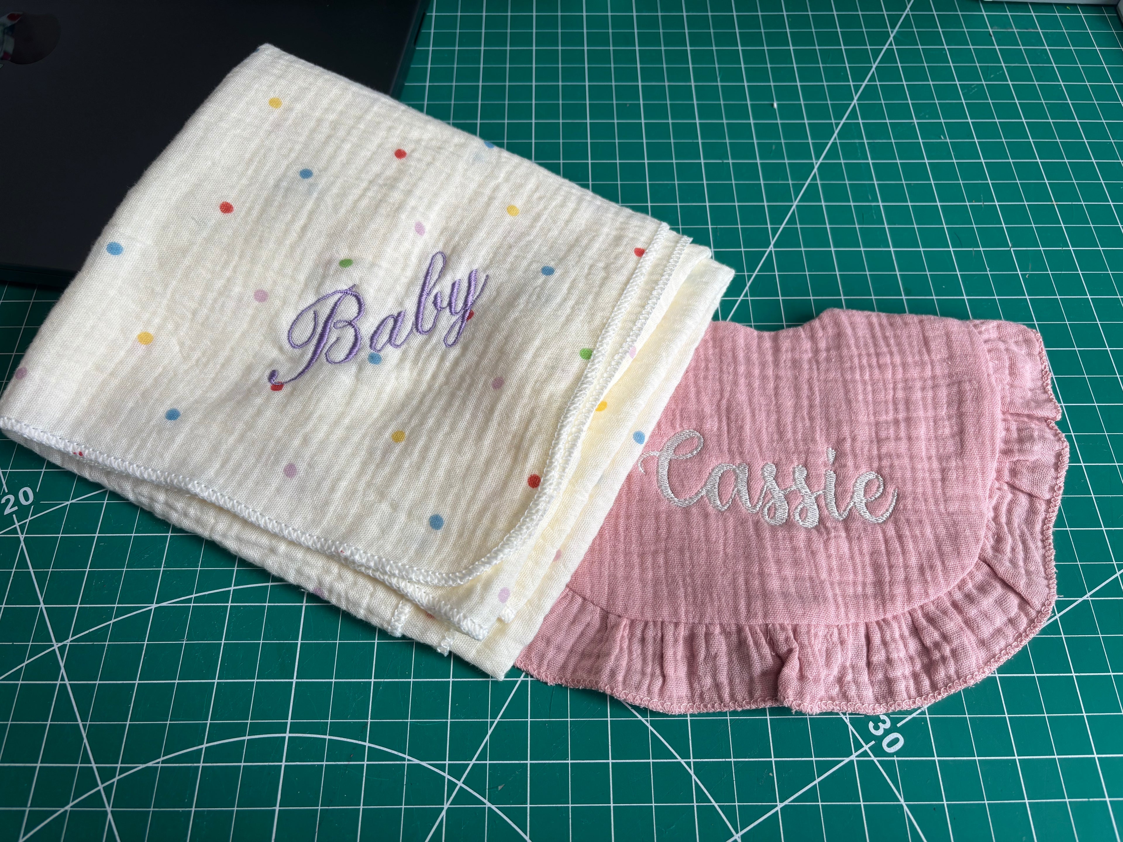 Enhance your baby's wardrobe with personalized hats and bibs featuring custom embroidery. Make everyday outfits special.