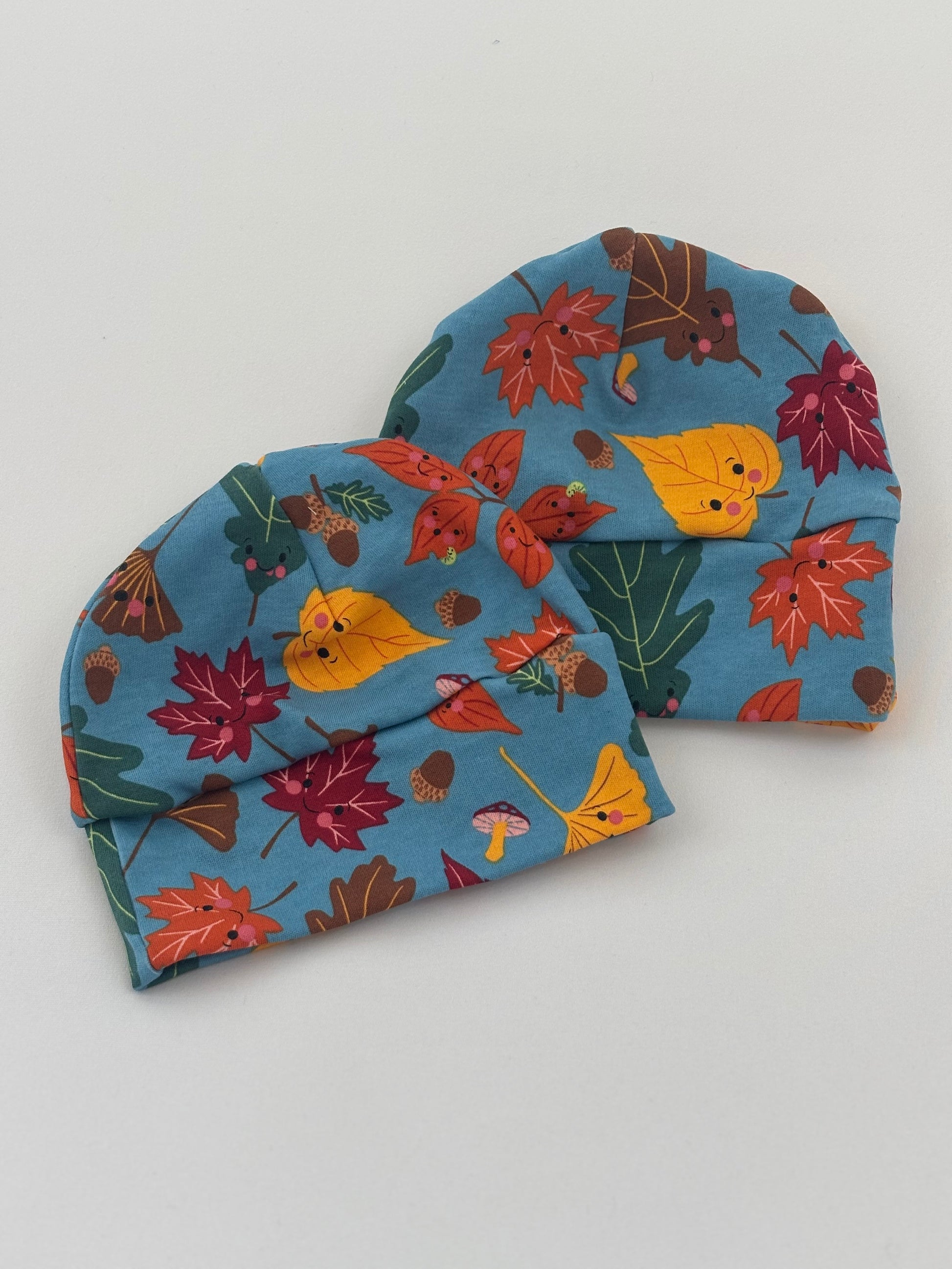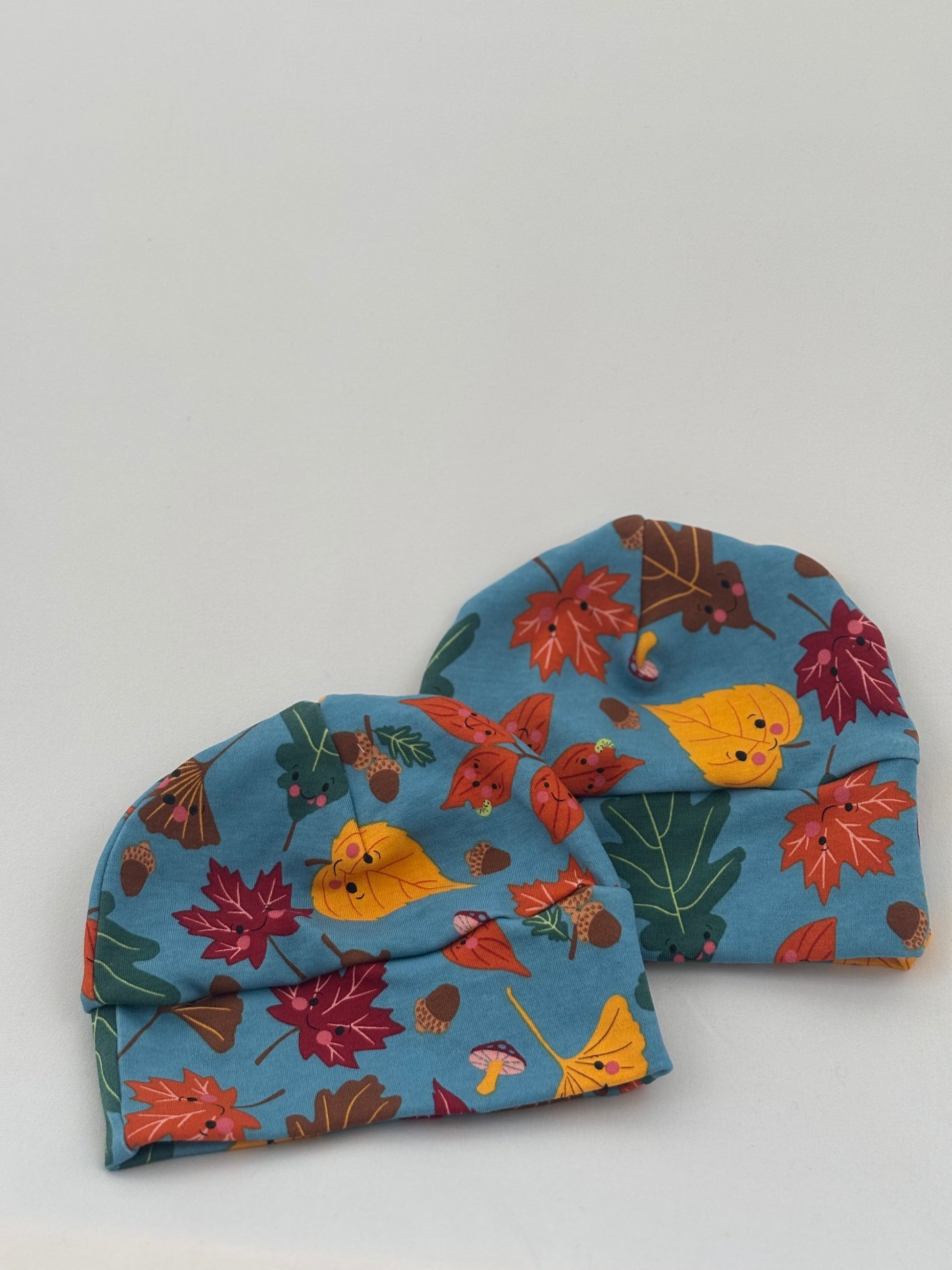 Our baby hats, designed for newborns up to three months, keep tiny heads warm and comfortable with a soft knit feel. Paired with our one-size bibs that grow as your little one moves from baby to toddler, this collection captures the cozy spirit of Fall—great for messy mealtimes and cute seasonal styles!