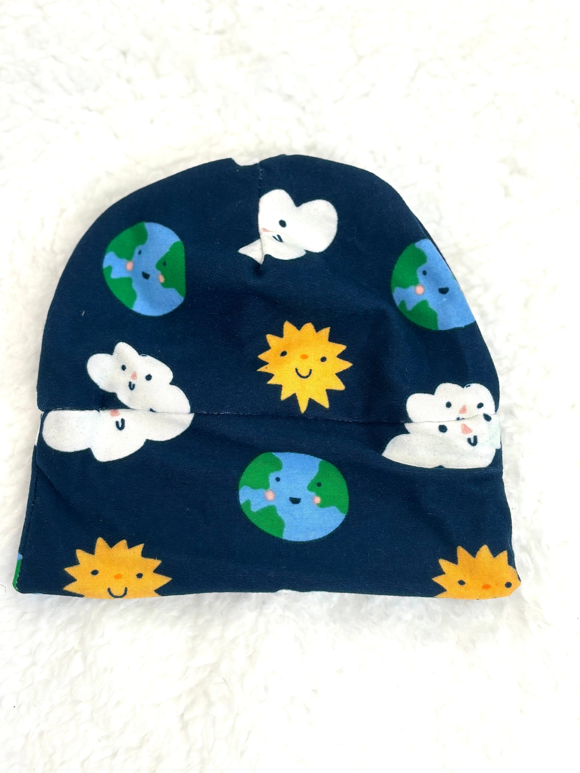 Our baby hats, designed for newborns up to three months, keep tiny heads warm and comfortable with their gentle knit fabric. Paired with our adjustable bibs that grow from infant to toddler stages, this lineup features fun space-themed constellations and planets—ideal for catching dribbles while adding a touch of cosmic charm to your little one’s outfit!