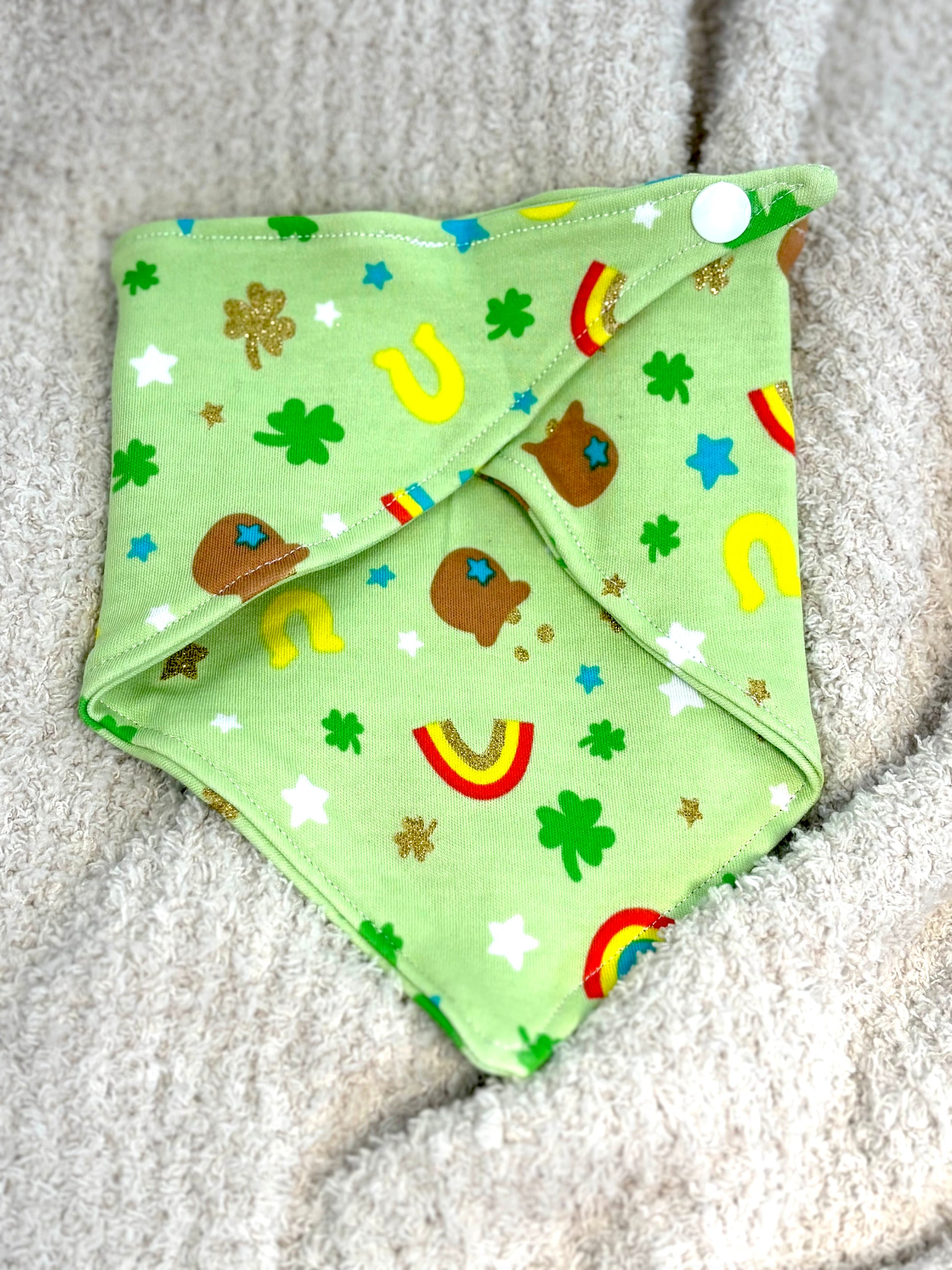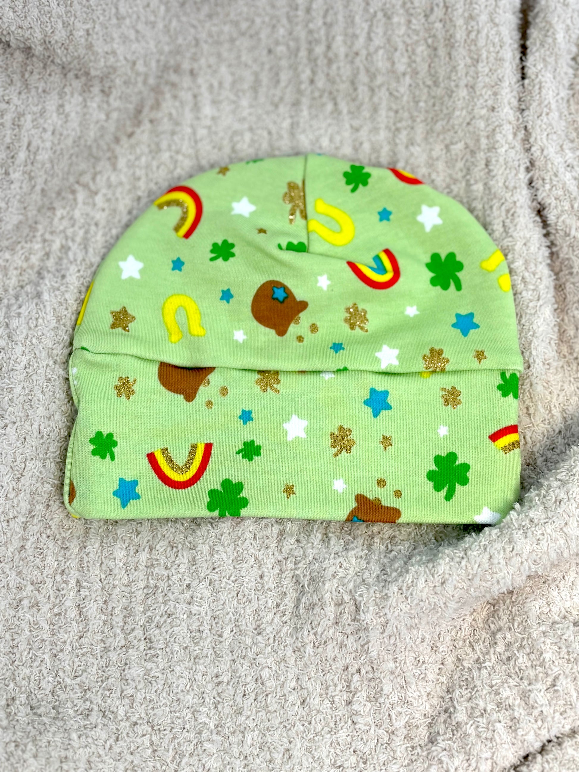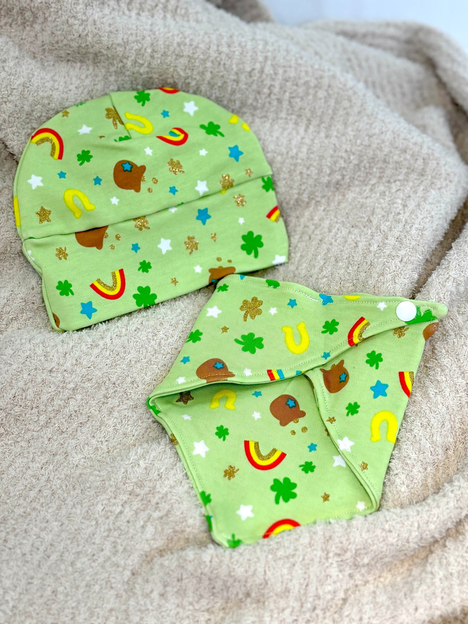 Our baby hats are designed to fit newborns through three months, wrapping tiny heads in soft, warm knits. Paired with our adjustable bibs that accompany your little one from baby to toddlerhood, this festive collection is filled with fun St. Patrick's Day spirit—ideal for catching spills and adding a touch of charm!